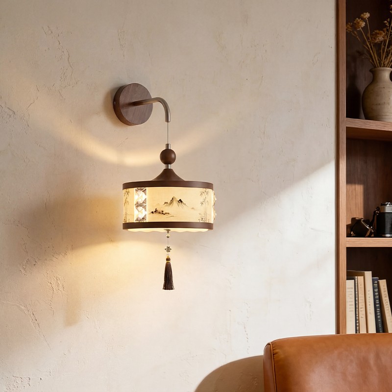 A0466-胡桃木色+米黄色-W200XS245X385/LED12W