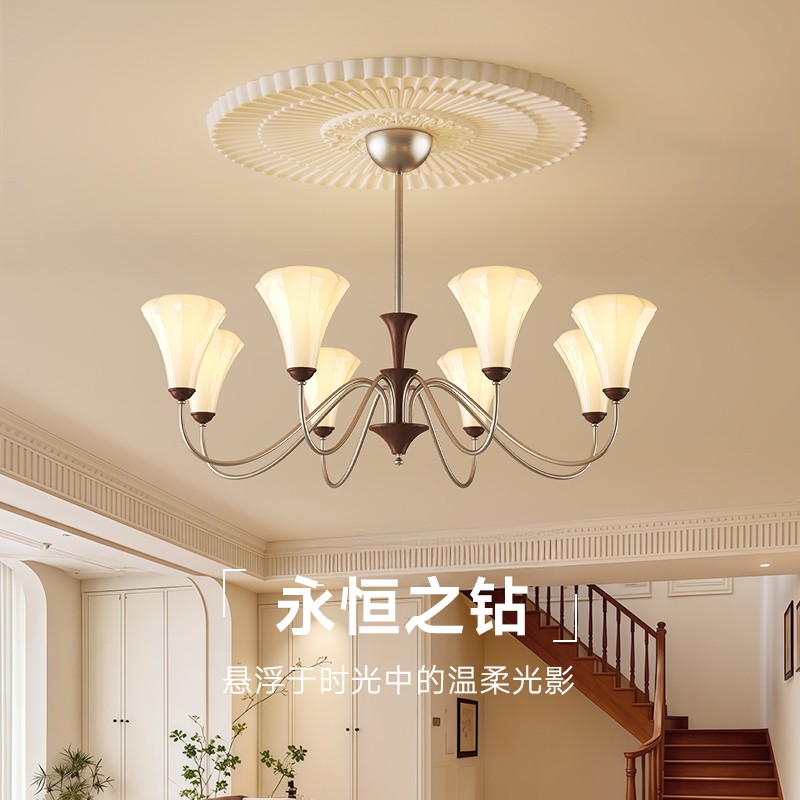 A0452-胡桃木色+奶白色+铬色-8头1050X600/E27光源96W