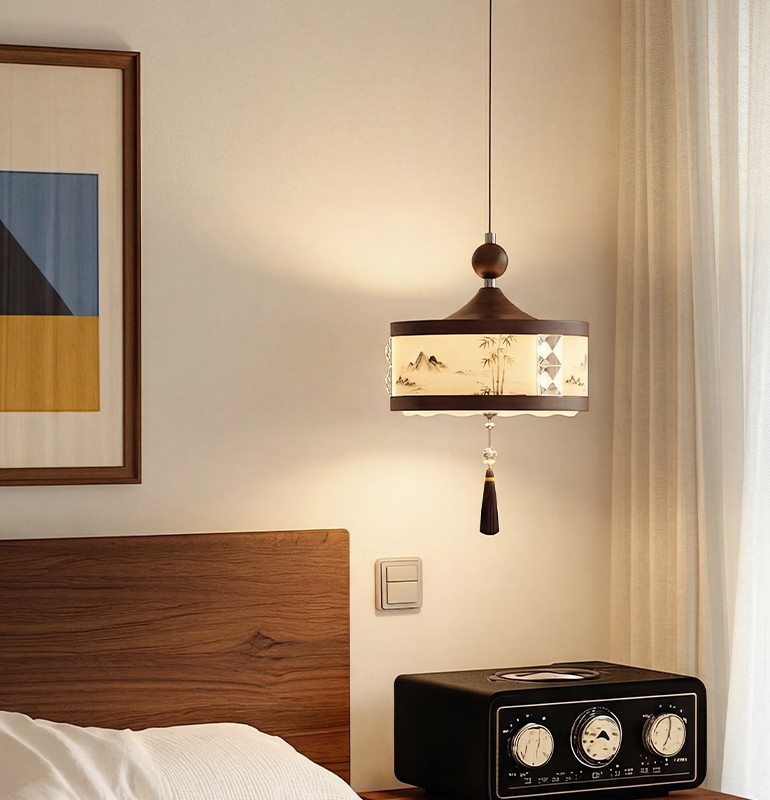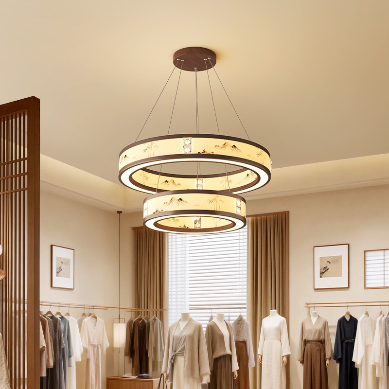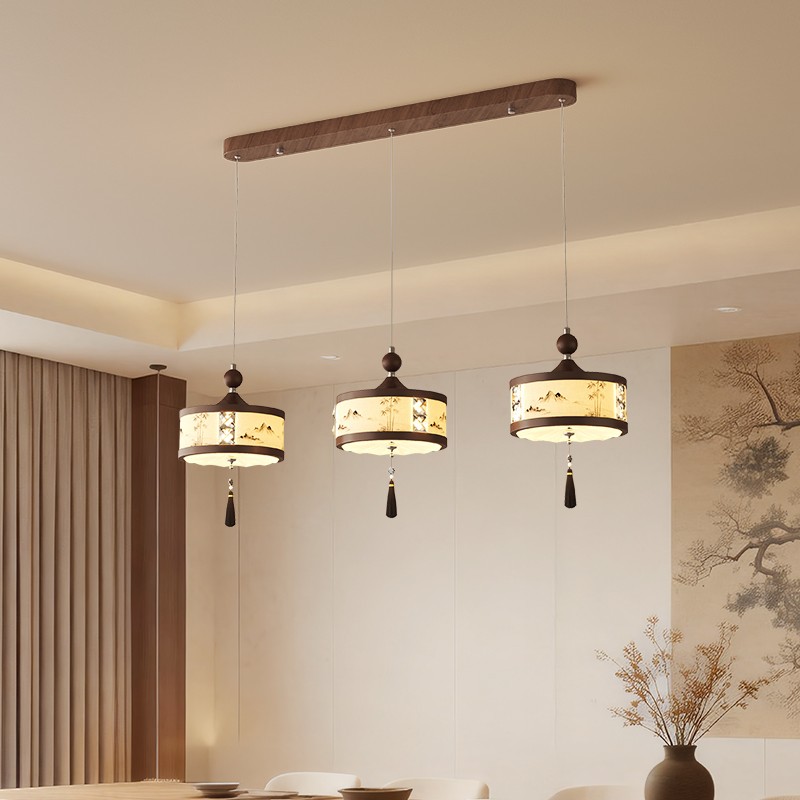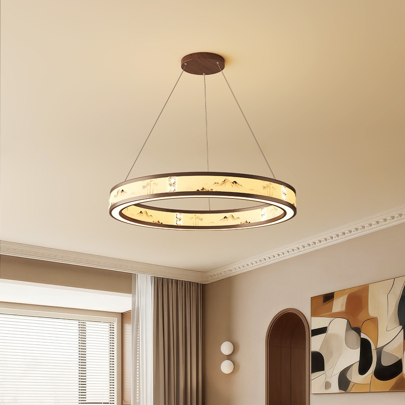 A0457-胡桃木色+奶白色-接线款L340X510/E27光源12W