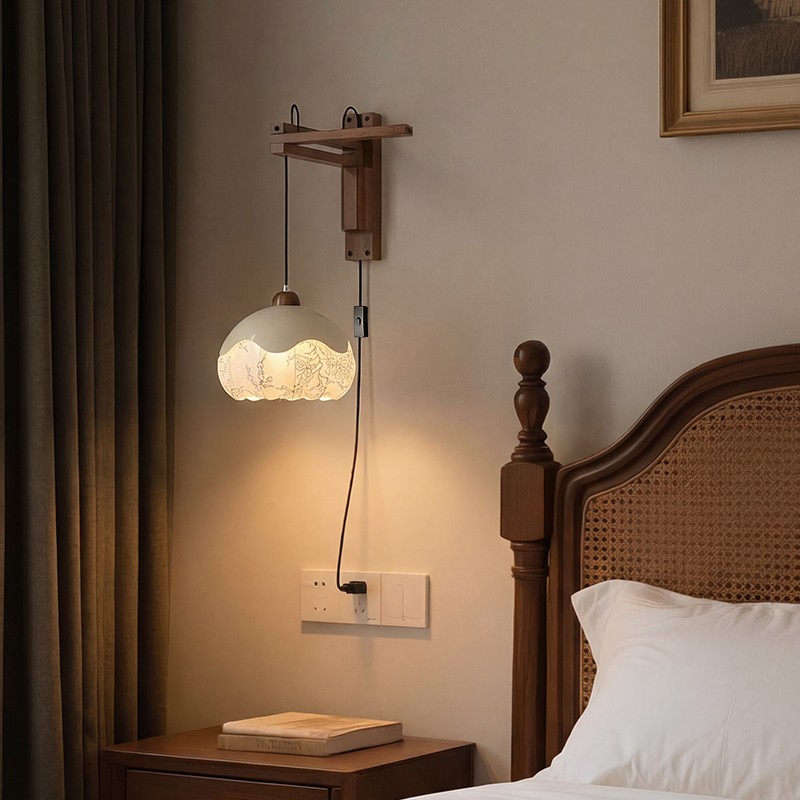 A0457-胡桃木色+奶白色-插头款L340X510/E27光源12W
