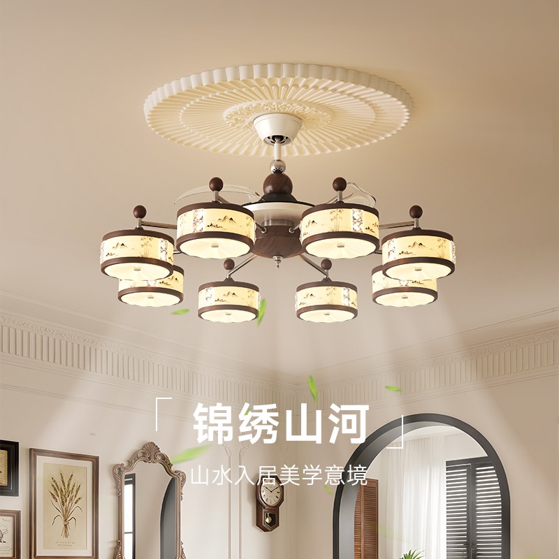 A0459-胡桃木色+铬色+奶白色-8头1050X575叶展710/E14光源96W+电机30W